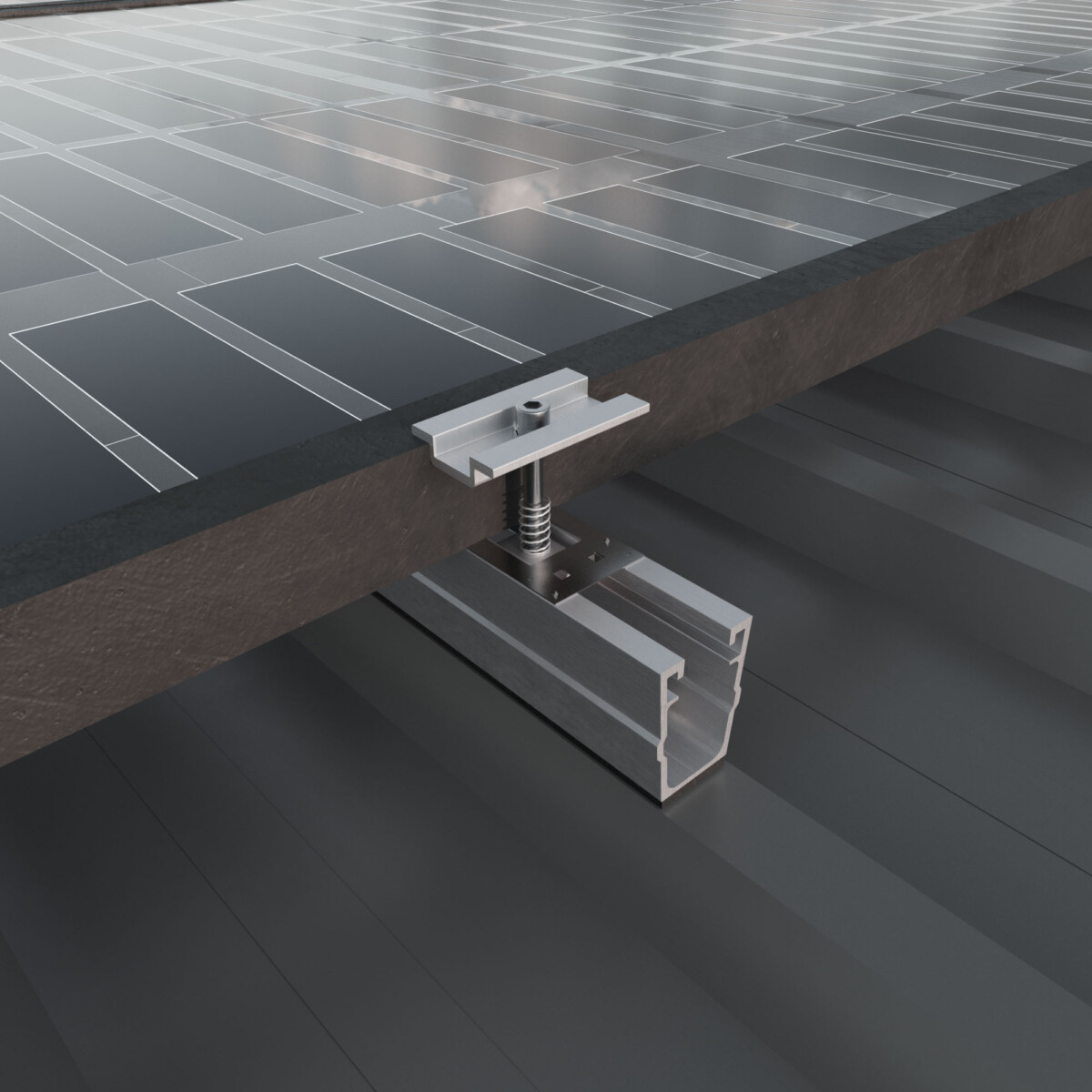 Support coplanaire micro-rail, fixation à tôle pour toiture métallique