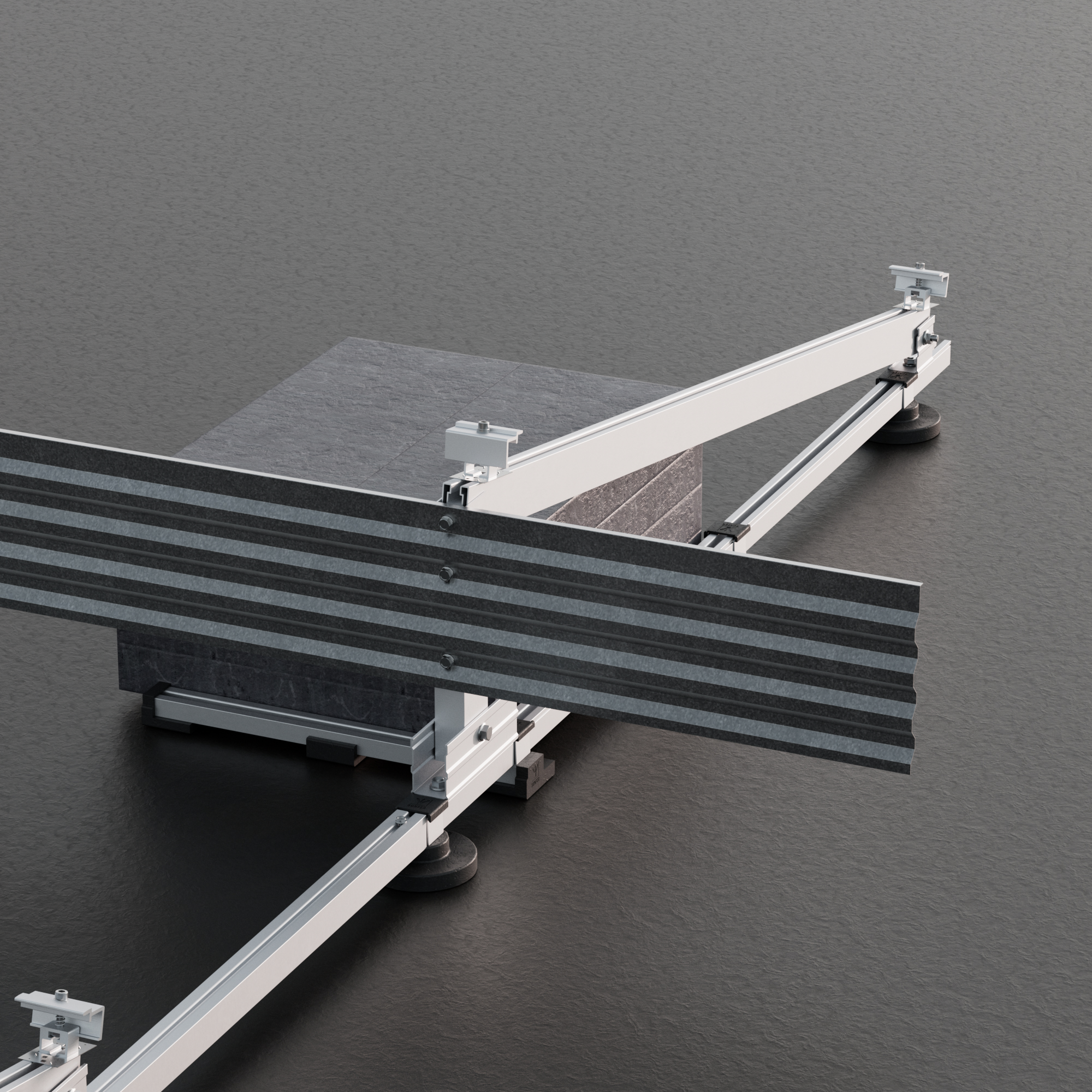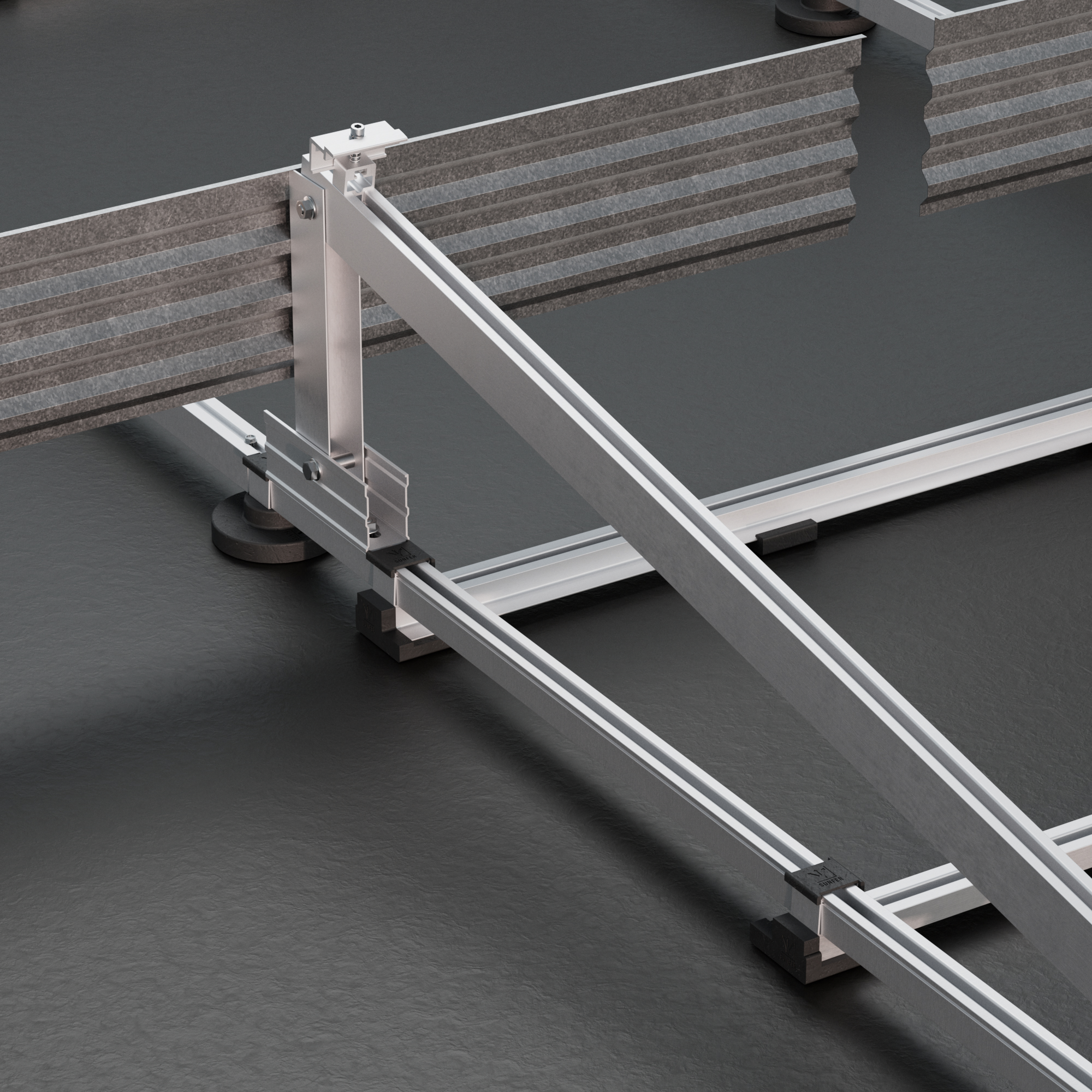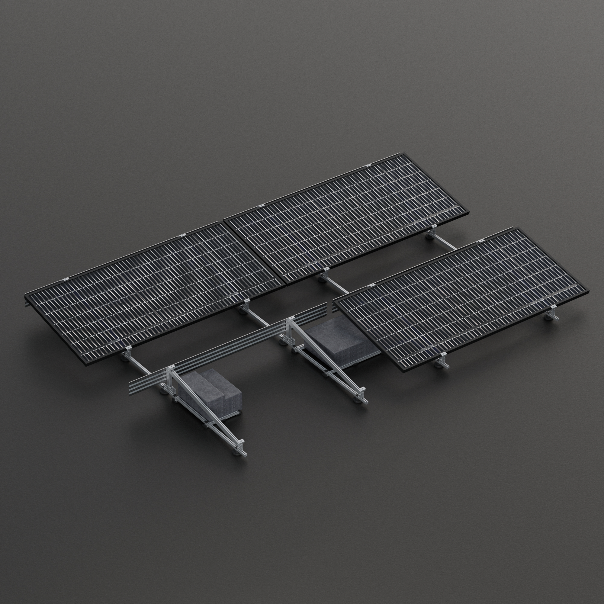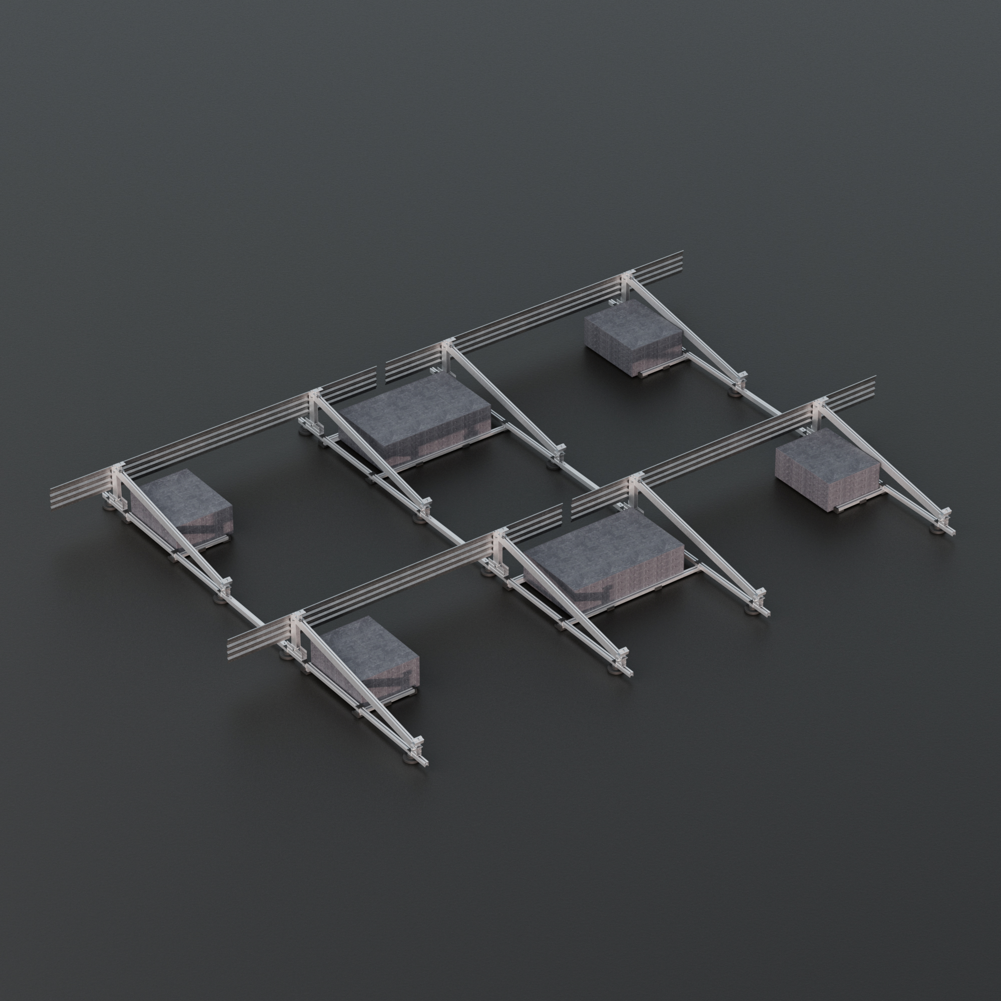 Sistema con portalastres regulables que permite colocar cualquier lastre del mercado (bordillos, bloques de hormigón…) permitiendo colocar el contrapeso centrado o descentrado. Lastres no incluidos.