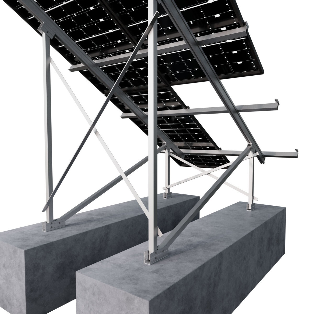 Soporte inclinado para terreno, para 2 filas de módulos en vertical